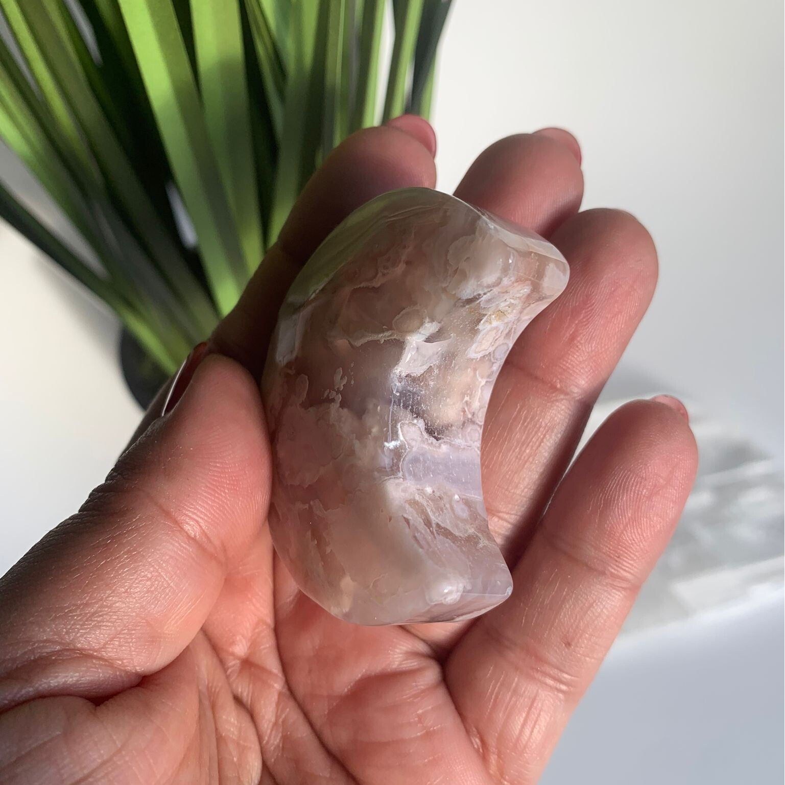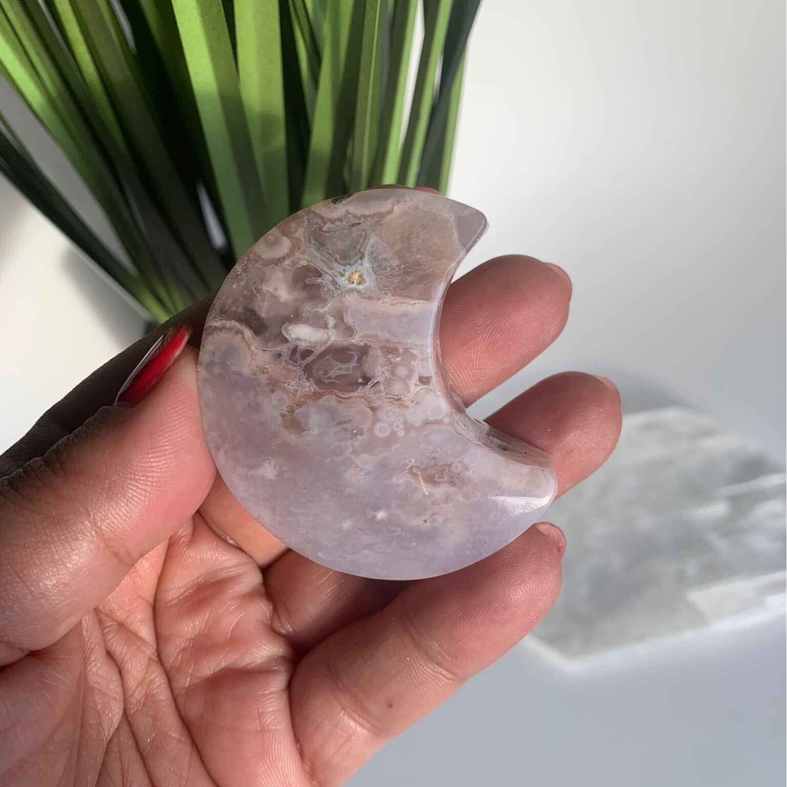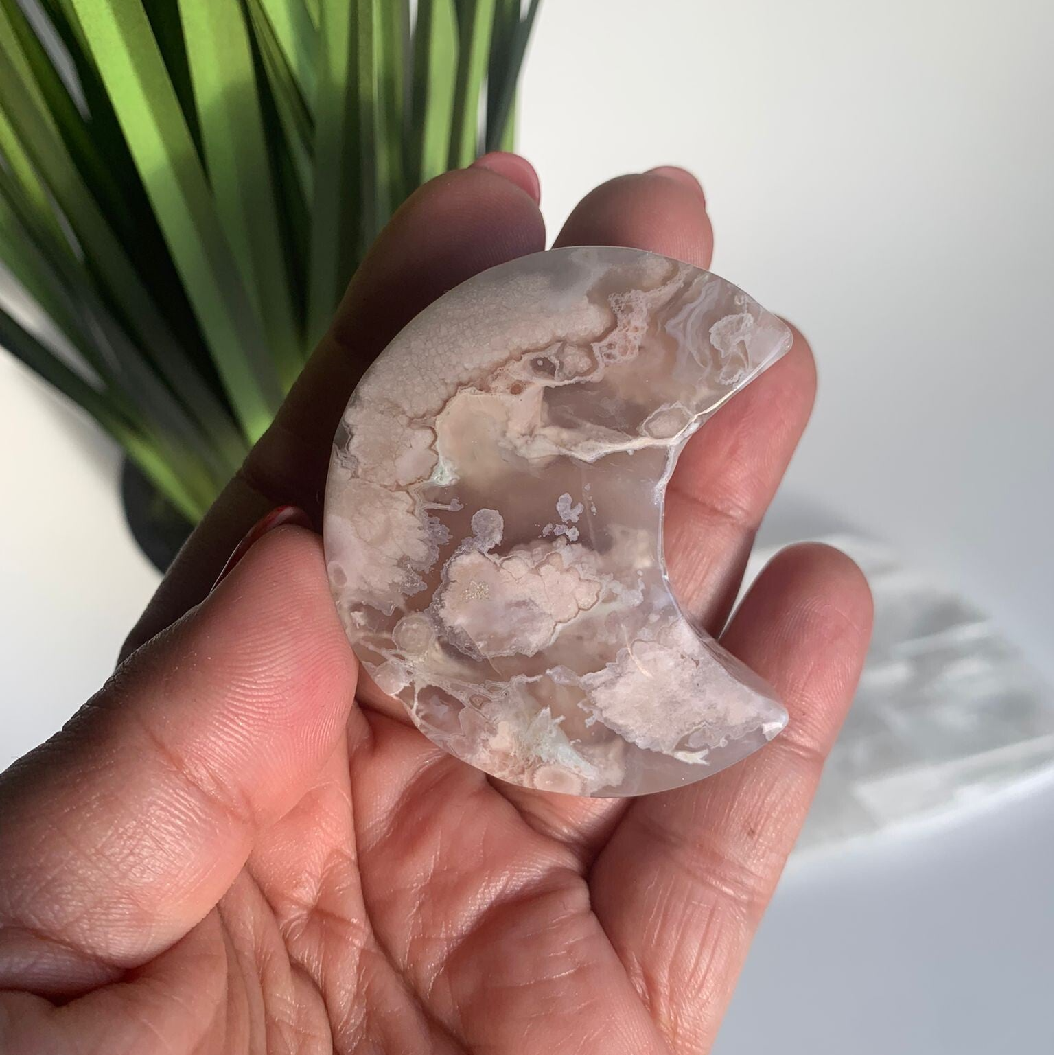 Flower Agate Moon Carving – A Bloom of Growth and Positivity
