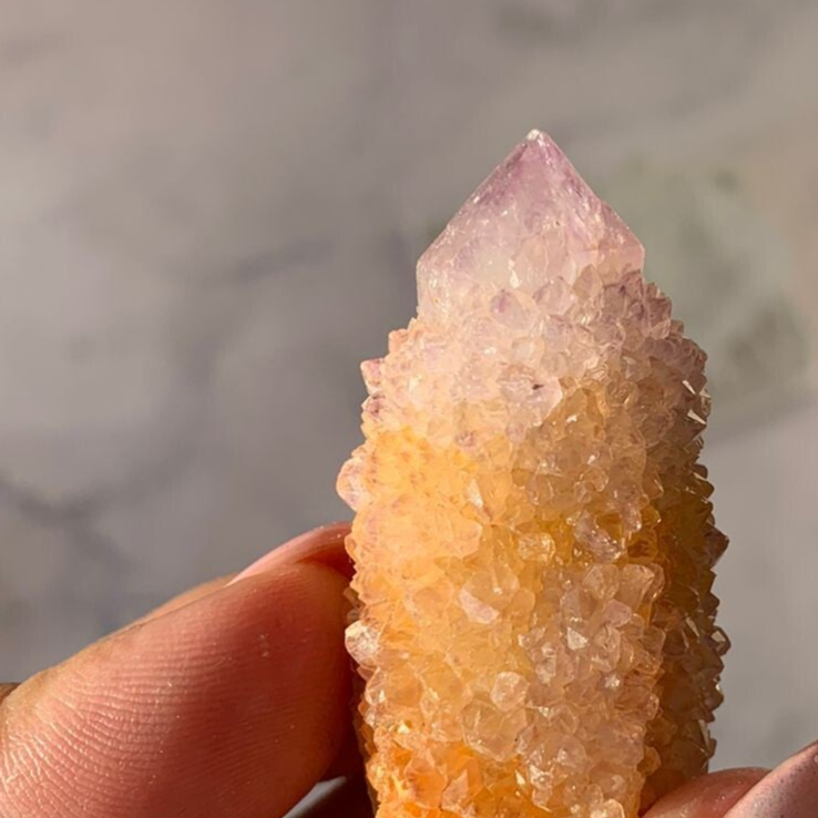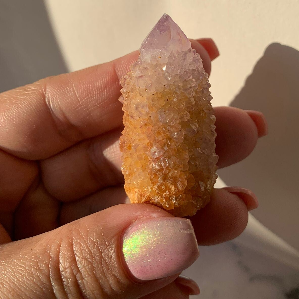 Spirit Aura Quartz is a mesmerizing, iridescent crystal that combines the power of clear quartz with a stunning, rainbow-colored aura. Known for its high vibrational energy, this stone is believed to amplify spiritual connection and aid in emotional healing. Spirit Aura Quartz stimulates all chakras, promoting clarity, balance, and a sense of enlightenment. Its radiant colors encourage transformation, helping to release negative emotions and invite peace, joy, and positivity. Perfect for those seeking spiritual growth, higher consciousness, and inner harmony, Spirit Aura Quartz is a beautiful tool for both grounding and uplifting energy.