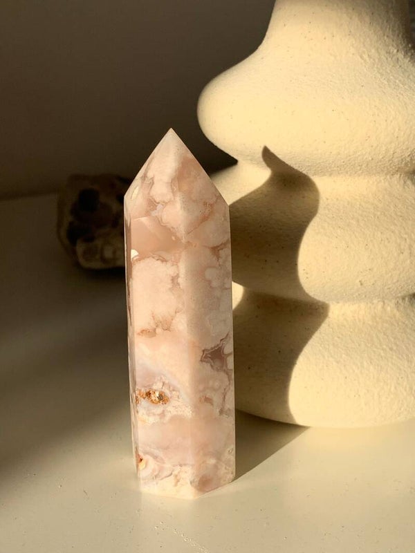 Flower Agate is a stunning, floral-patterned gemstone that symbolizes growth, renewal, and new beginnings. Known for its soft pink and white hues, this stone is deeply connected to the Heart Chakra, encouraging love, healing, and emotional balance. Flower Agate's gentle energy helps to open the heart to new possibilities, supporting personal growth, self-love, and the manifestation of dreams. It is a powerful stone for those seeking to overcome obstacles and embrace positive change, helping to nurture creativity, joy, and the flourishing of new opportunities.