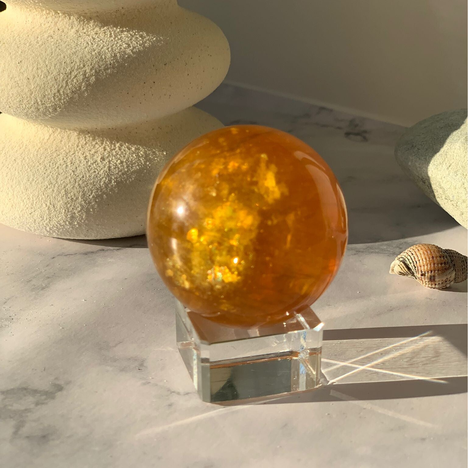 Fluorite with Garden & Mica Inclusion it is a captivating and unique crystal, blending the clarity and healing energy of Fluorite with the grounding, stabilizing influence of Mica. The "garden" inclusions natural formations within the Fluoritecreate a visual effect that symbolizes growth, evolution, and connection with the earth. This combination enhances mental clarity, concentration, and protection while promoting harmony between the mind and spirit. The mica inclusions offer an extra layer of grounding, helping to balance energies and encourage inner peace, while Fluorite amplifies spiritual growth and healing.