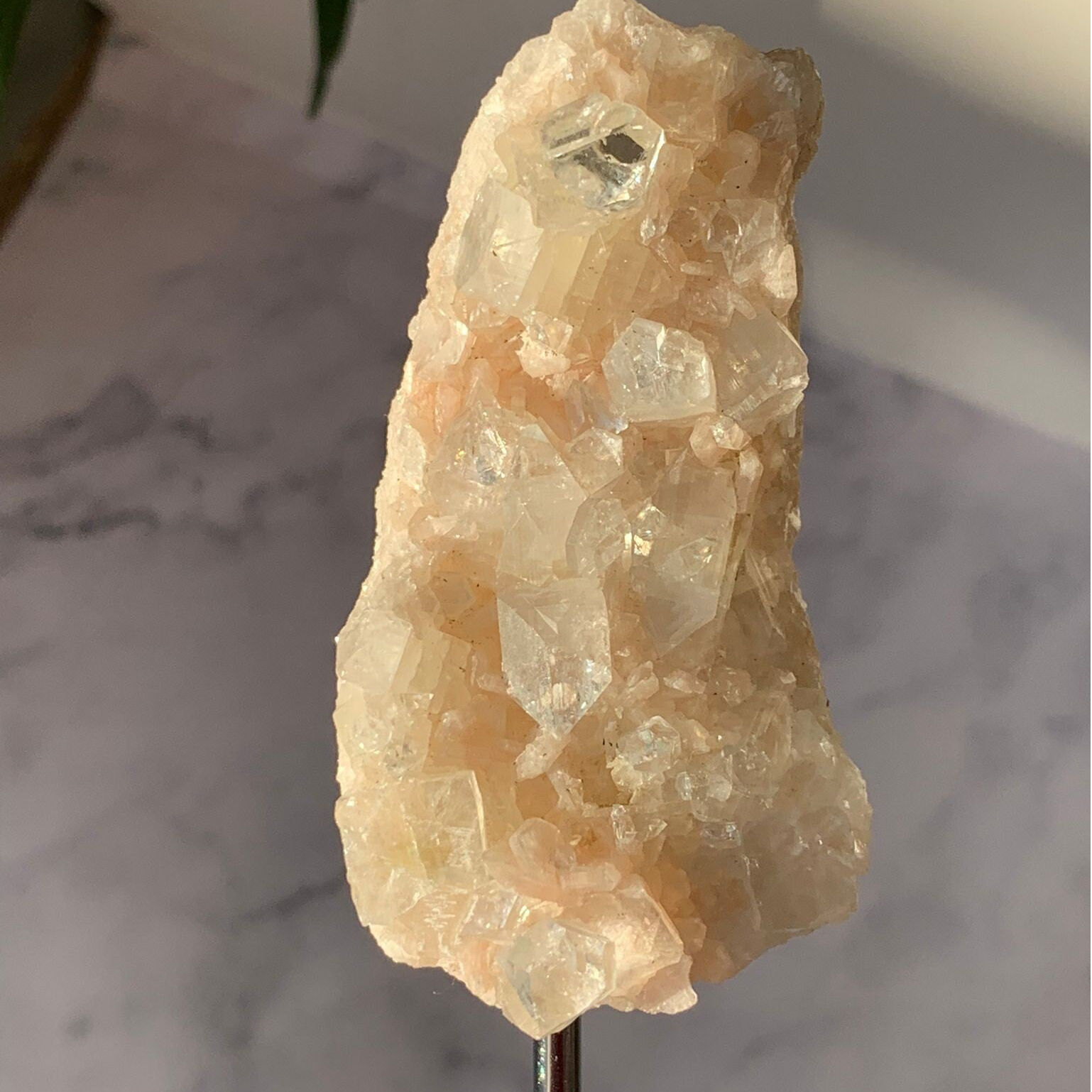 Apophyllite is a high-vibrational crystal known for its powerful connection to the spiritual realm. This translucent stone is a potent tool for meditation, healing, and clearing stagnant energy. Often linked to the Third Eye and Crown Chakras, Apophyllite enhances intuition, mental clarity, and spiritual awareness, helping you access higher consciousness and connect with your inner wisdom. It also promotes emotional healing, inner peace, and calmness, making it ideal for times of stress or anxiety. Apophyllite is perfect for anyone seeking to deepen their spiritual practice or experience a greater sense of tranquility and balance.