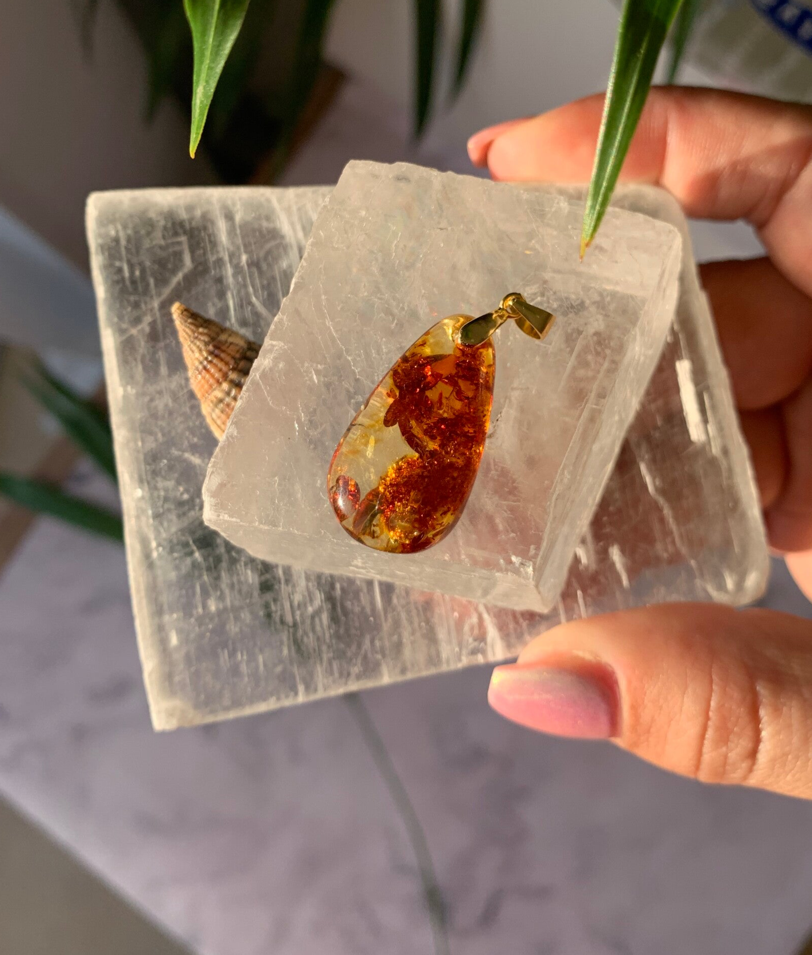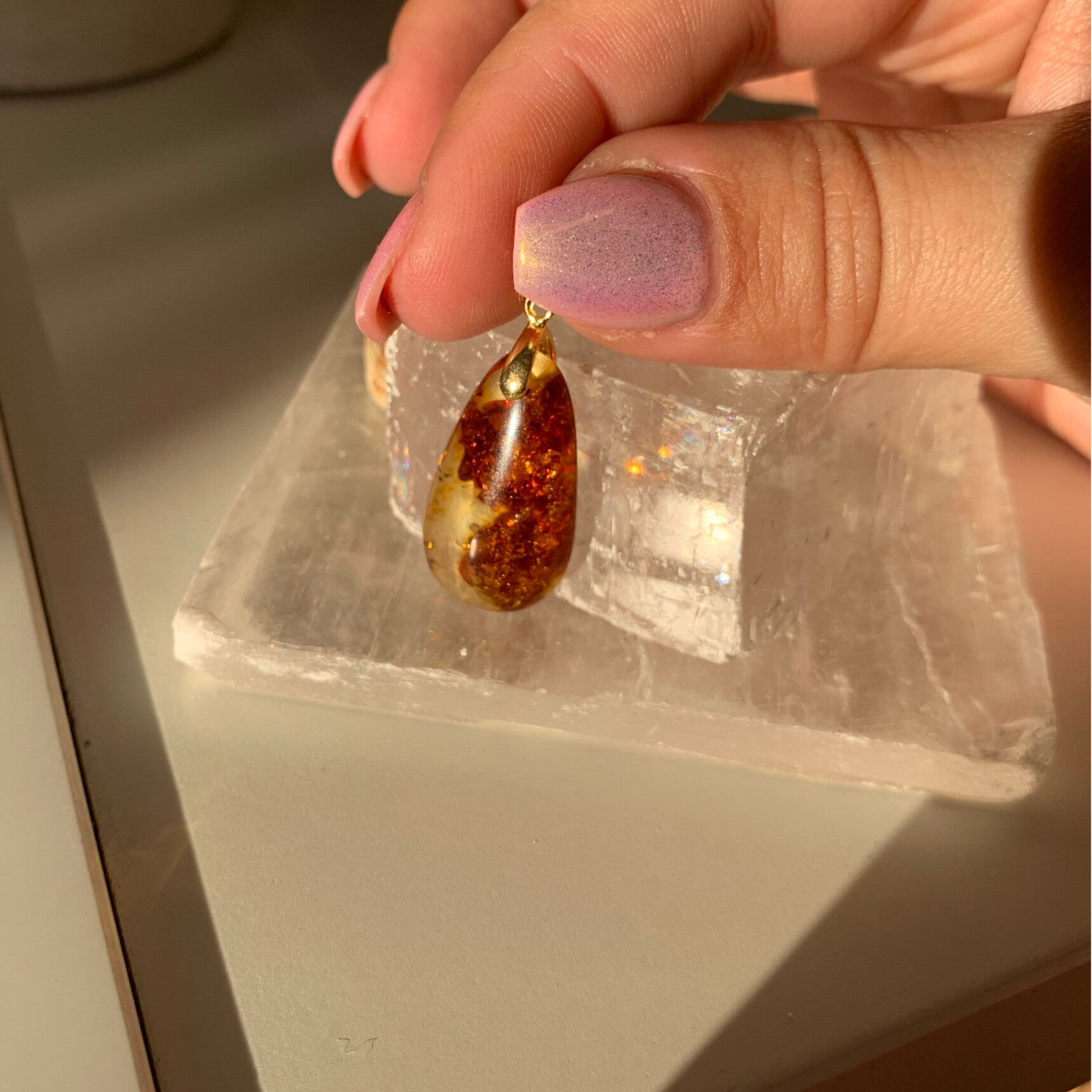 Amber teardrop pendant