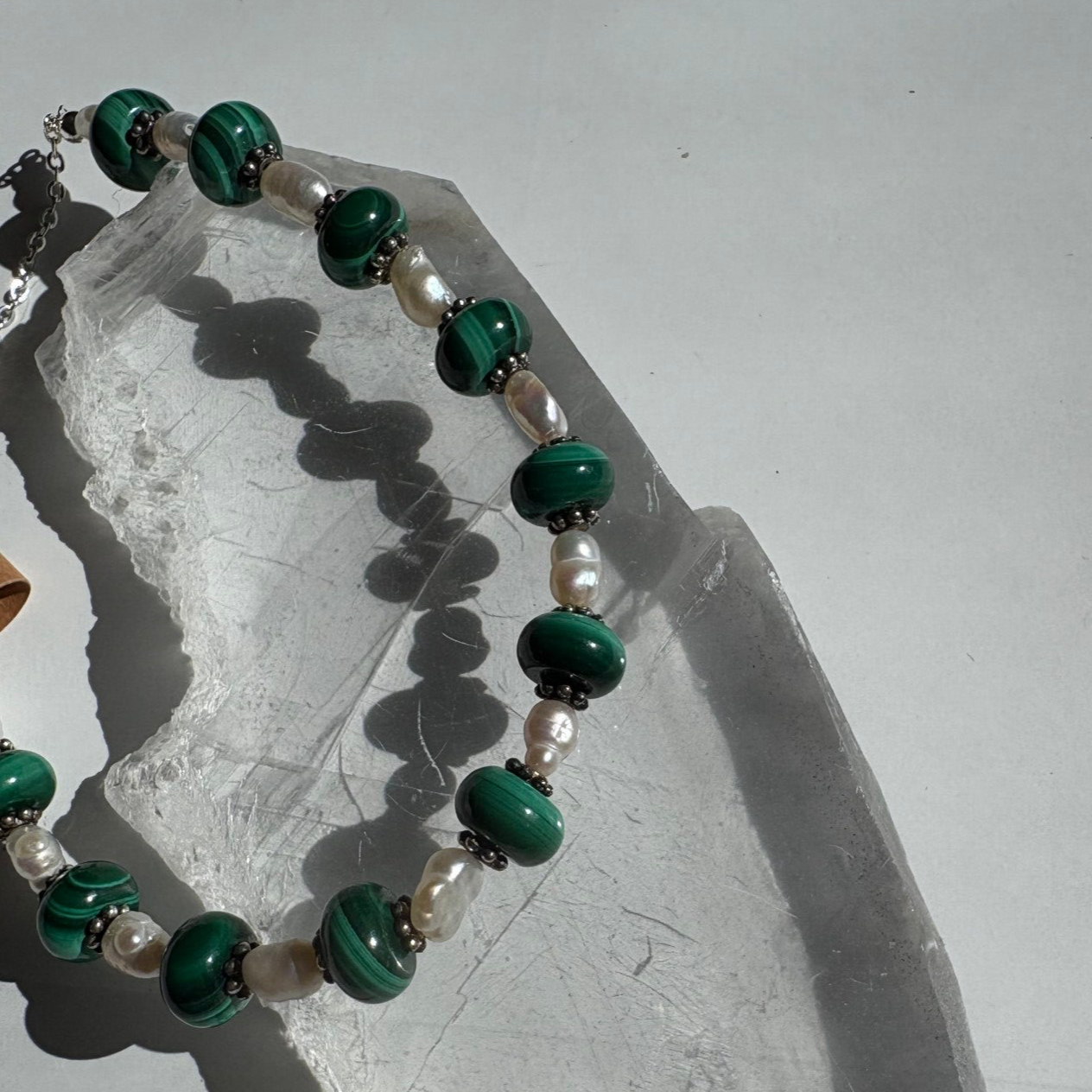Malachite & Fresh water pearls bracelet