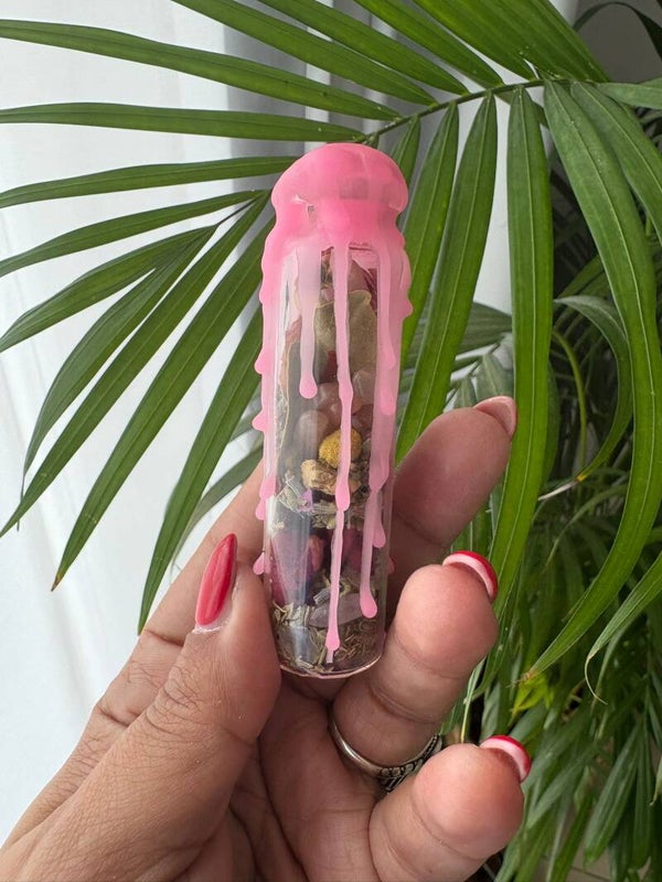 The Self Love Spell Jar is a gentle but powerful blend of self-worth herbs, heart-healing crystals, and uplifting energies to help you reconnect with your magic, soothe your soul, and call back your light. This is your reminder: you are already enough.