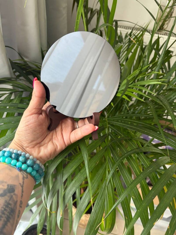 A powerful tool for divination, shadow work, and spirit communication. Hand-polished to a deep, reflective black, this obsidian mirror acts as a portal between the seen and unseen realms. Ideal for scrying, meditation, and ancestral connection, it channels the grounding and protective energy of volcanic glass.