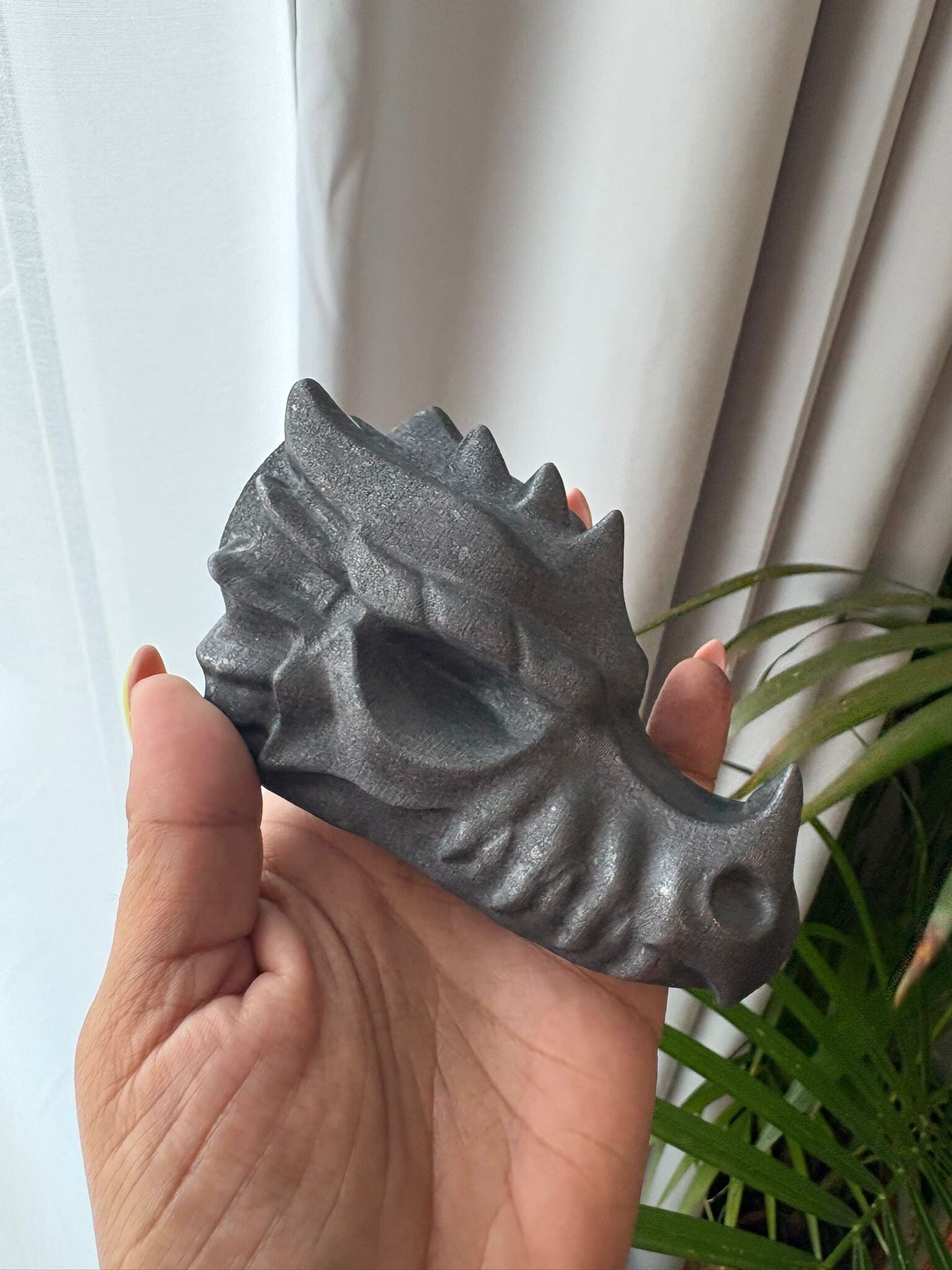 Carved from genuine shungite, this dragon head merges the ancient power of the dragon with the profound protective energy of one of Earth’s most remarkable stones. Shungite is celebrated for its ability to shield against negative energies, cleanse the aura, and absorb electromagnetic pollution.