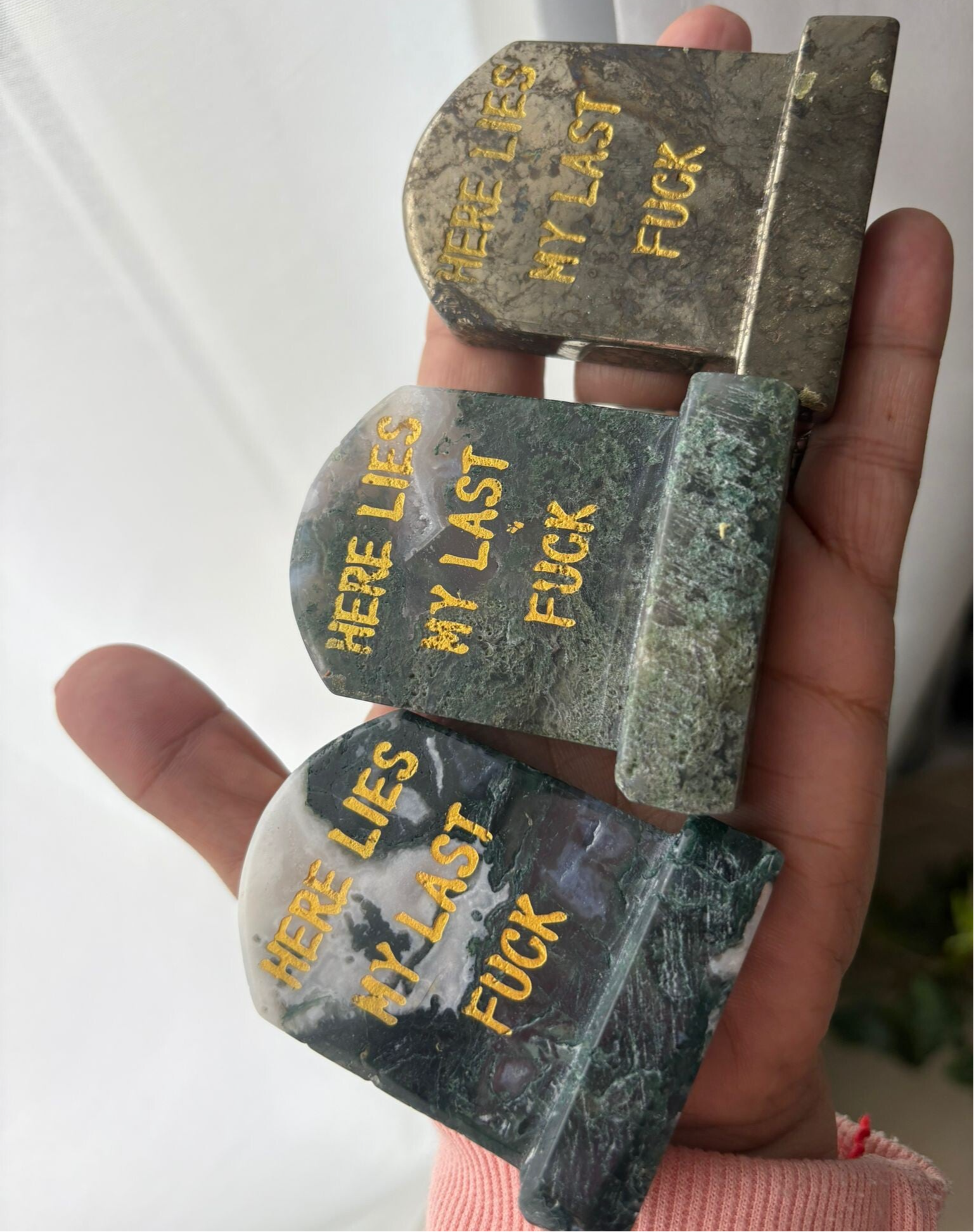 Crystal Tombstone Carvings “Here Lies My Last F***”