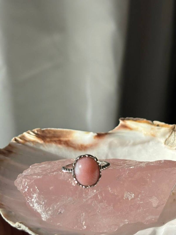 Soft and enchanting, Aphrodite Whisper carries the gentle glow of Pink Opal, a stone of love, tenderness, and emotional healing. Dedicated to the goddess of beauty and passion, this ring awakens the heart to compassion, romance, and self-love.