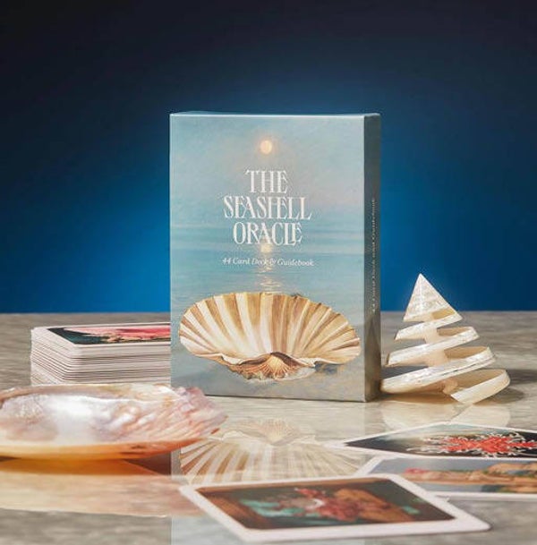 The Seashell Oracle guides oceanic thinking about the past, present, and future through 44 cards and a guidebook for their interpretation.
