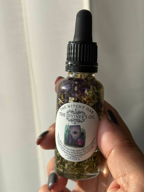 The Diviner’s Oil is crafted to strengthen intuition, inner knowing, and spiritual perception. It supports those who seek clarity beyond the surface and wish to trust their own sight both seen and unseen.