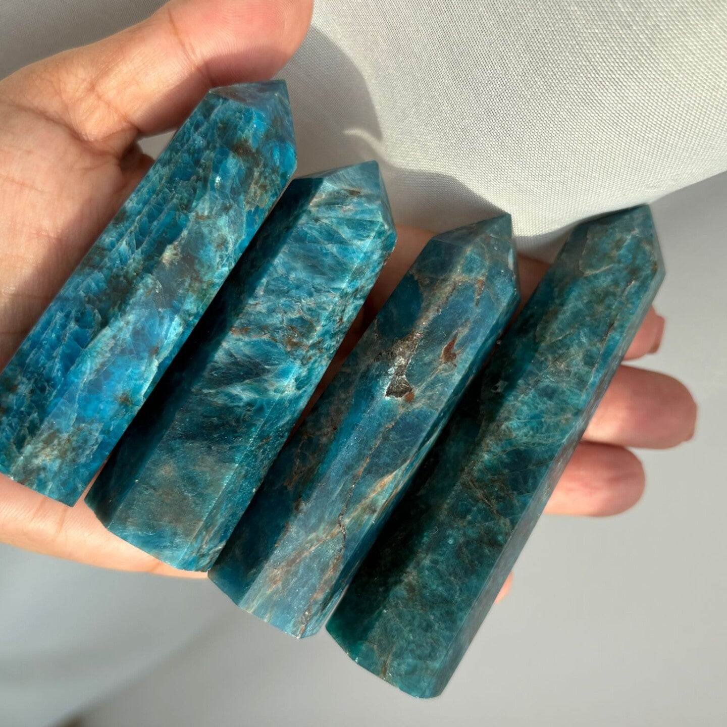Apatite is a crystal of movement and intention. It clears mental fog, awakens ambition, and helps turn dreams into action. Its bright, electric energy aligns your thoughts with your will making it especially powerful for goal-setting, creative work, and manifestation magic.