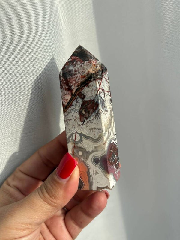Mexican Lace Agate is a deeply grounding and protective stone, known for its intricate lace-like patterns that hold layers of ancient earth energy. It brings emotional balance, inner strength, and a sense of being held and supported through change.
