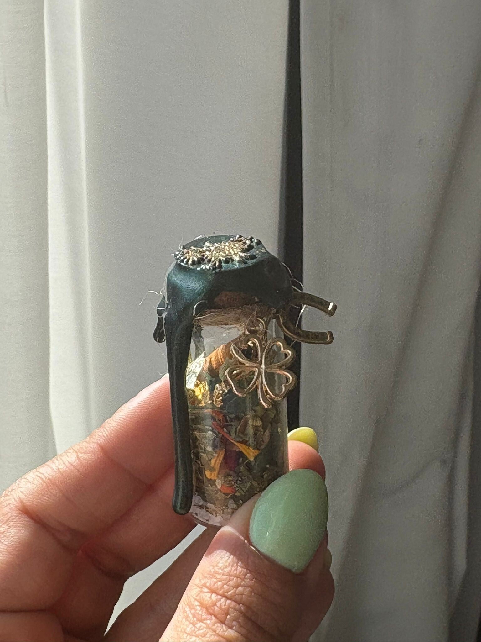 A bright and uplifting spell jar created to draw luck, fortunate coincidences, and positive opportunities into your life. Crafted with ingredients traditionally associated with prosperity, good fortune, and success, it acts as a magnet for beneficial energy.